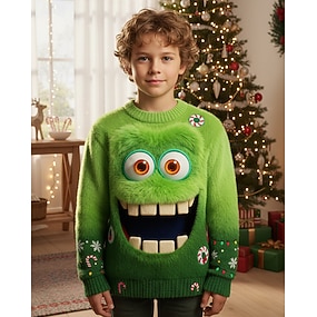Kerstmis Jongens 3D Sneeuwvlok  Elf Lelijke kersttrui kerstcadeau Trui Lange mouw 3D-afdrukken Herfst Winter Modieus Feest Kinderen 4-12 jaar Strakke ronde hals Buiten Dagelijks Normale pasvorm