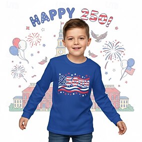 Jongens 3D Grafisch Vlag 250-jarig jubileum T-shirt Lange mouw 3D-afdrukken Lente Herfst Sport Modieus Streetwear Kinderen 4-12 jaar Strakke ronde hals Casual Dagelijks Buiten Normale pasvorm