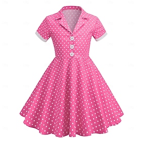 Jaren '50 Hepburn Retro vintage Middag A-lijn jurk Swing Jurk Flare Jurk Korte mouwen Stip A-lijn Kostuum Voor meisjes Carnaval Maskerade Vakantie Dagelijks gebruik Kinderen Kleding Homecoming-jurken