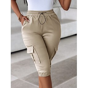 Dames Cargohosen Chinese Vakantie Modieus Streetwear Knielengte Hoge taille Effen Kleur Zak Elastische tailleband Comfortabel Comfort Zacht Rekbaar Buiten Straat Alledaagse kleding blauw Zwart