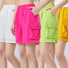 Dames Cargoshorts Korte broek Zomer korte broeken Strandshorts Vakantie Modieus Casual / Dagelijks Korte Medium Taille Effen Kleur Effen Zak Sportief Elastische tailleband Comfort Sneldrogend Zacht