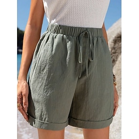 Dames Imitatie katoenlinnen Korte broek Zomer korte broeken Strandshorts Vakantie Modieus Casual / Dagelijks Korte Hoge taille Effen Kleur Effen Trekkoord Zak Elastische taille Comfort Zacht Ademend