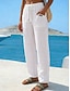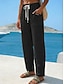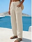 Dames Katoenen linnen broek Broek Zomerbroek Wijde broek Vakantie Vintage Modieus Volledige lengte Medium Taille Effen Kleur Elastische taille Sneldrogend Ademend Lichtgewicht Micro-elastisch Buiten