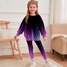 Voor meisjes 3D Grafisch Sportoutfit Trainingspakken Sweatshirt- en leggingset Lange mouw Lente Herfst Dagelijks Casual Panty Kinderen 4-12 jaar Strakke ronde hals Buiten Vakantie Sport Getailleerd