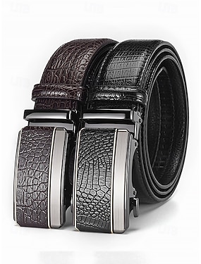 Herenriem van imitatieleer met krokodillenmotief – verstelbare riem met automatische gesp voor zakelijk, casual en dagelijks gebruik
