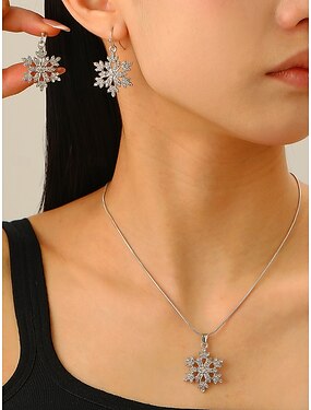 sneeuwvlok sieradenset voor dames met een fonkelende kristallen hangerketting en oorbellen - elegante winterstijl voor kerstfeestjes en vakantiecadeaus