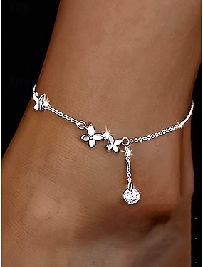 Zilveren vlinderenkelbandje voor dames – elegant bloemendesign met sprankelende kristallen details, perfect voor casual gebruik