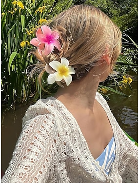 6 stuks Hawaiiaanse plumeria bloemen haarspeldjes – tropische hars haaraccessoires voor vrouwen en meisjes, strandbruiloft, luau-feest en zomervakantie-styling