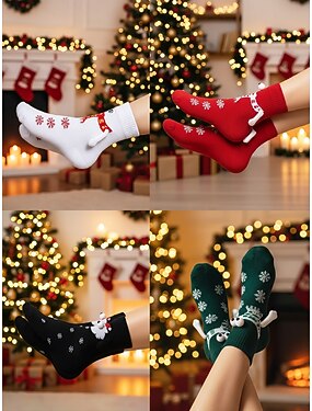 Dames kerstkniekousen, warme, comfortabele winterkousen met feestelijk roodgroen sterrenpatroon voor tijdens de feestdagen &geschenken