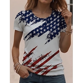 Onafhankelijkheidsdag Amerikaanse Jubileum Patriottische Dames T-shirt Print Grafisch Vlag Stijlvol Klassiek Casual Korte Mouw Crew Neck Ronde Hals Reguliere Tops Dagelijks Blauw Zwart Wit Rood