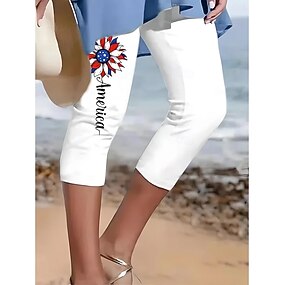 Onafhankelijkheidsdag Patriottische Vrouwen Capri Broeken Leggings Vakantie Hawaiian Stijlvolle Capris Middel Hoge Taille Broeken Grafische Nationale Vlag Comfort Rekbaar Buiten Vakantie Formeel