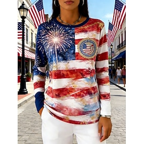 Amerikaanse onafhankelijkheidsdag Dames T-shirt Afdrukken Grafisch Vlag Ster Modieus Basic Klassiek Lange mouw Strakke ronde hals Normale tops Dagelijks Uitgaan Weekend blauw Rood Zomer Lente Herfst