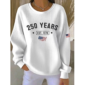 Onafhankelijkheidsdag Amerikaanse verjaardag Patriottische dames Pullover Grafisch Letter Warm Klassiek Casual Lange Mouw Ronde Hals Casual Thuis Straat Print Blauw Zwart Wit Rood Lente Herfst Winter