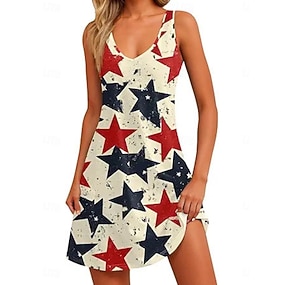 Onafhankelijke Dag Dames Knielengte jurk Casual jurk Slipdress Modieus Klassiek Modern Buiten Vakantie Uitgaan Normale pasvorm Sterren en strepen Mouwloos V-hals blauw Wit Bordeaux Khaki Zomer Lente