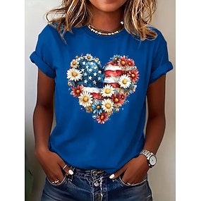 Amerikaanse onafhankelijkheidsdag Dames T-shirt Afdrukken Hart Grafisch Vintage Stijlvol Klassiek Korte mouw Strakke ronde hals Lange tops Dagelijks blauw Zwart Wit Rood Zomer Lente