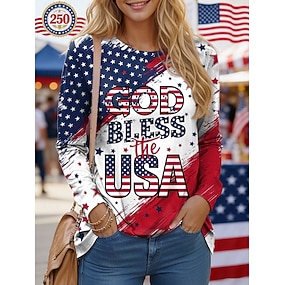 Amerikaanse onafhankelijkheidsdag Dames T-shirt Afdrukken Grafisch Gestreept Modieus Stijlvol Basic Lange mouw Strakke ronde hals Normale tops Dagelijks Uitgaan Weekend blauw Zomer Lente Herfst 250th