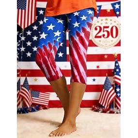 Amerikaanse Onafhankelijkheidsdag dameslegging vakantiemode casual capri broek met hoge taille comfortabel stretch dagelijks vakantie streetstyle blauw wit rood zomer lente