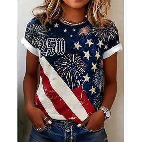Amerikaanse onafhankelijkheidsdag Dames T-shirt Afdrukken Grafisch Amerikaanse vlag Modieus Stijlvol Klassiek Korte mouw Strakke ronde hals Normale tops Casual Dagelijks blauw Rood Zomer Lente