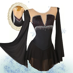 Kunstschaatsjurk Dames Voor meisjes Schaatsen Jurken Zwart Lapwerk Open achterkant Netstof Hoge Elasticiteit Opleiding Wedstrijd Kunstschaatskleding Klassiek Lange mouw Schaatsen Kunstschaatsen