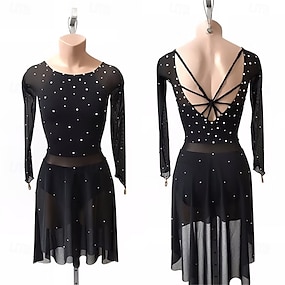 Kunstschaatsjurk Dames Voor meisjes Schaatsen Jurken Zwart Duimopening Asymetrische zoom Netstof Spandex Rekbaar Opleiding Oefenen Professioneel Kunstschaatskleding Thermisch Warm Klassiek Kristal
