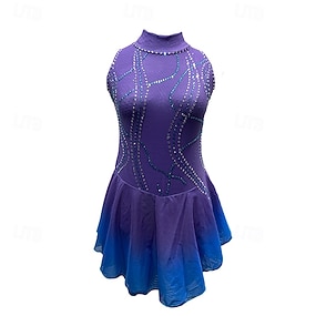 Kunstschaatsjurk Dames Voor meisjes Schaatsen Jurken Paars Duimopening halo-verf Hoge Elasticiteit Professioneel Wedstrijd Kunstschaatskleding Thermisch Warm Kristal / Bergkristal Lange mouw
