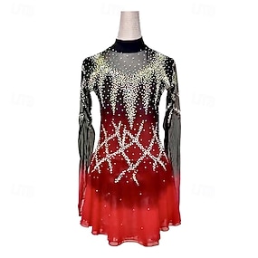 Kunstschaatsjurk Dames Voor meisjes Schaatsen Jurken Rood / geel Duimopening halo-verf Netstof Spandex Rekbaar Opleiding Oefenen Professioneel Kunstschaatskleding Thermisch Warm Klassiek Kristal
