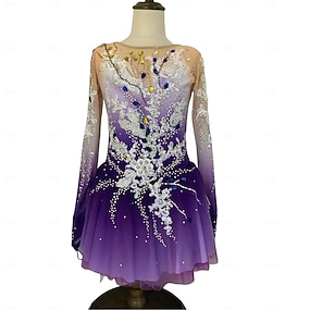 kunstschaatsjurk dames meisjes schaatsjurk paars duimgat halo-verven rekbaar training praktijk professionele schaatskleding klassiek kristal / strass lange mouw schaatsen figuur