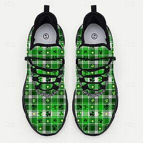 Dames hardloopschoenen met klaverprint voor St. Patrick's Day - lichtgewicht, ademende veterschoenen voor parades, festivals, reizen en wandelen. &actieve vrijetijdskleding