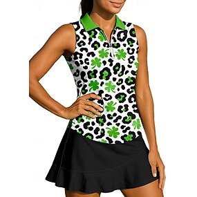 Sint Patrick Dames Luipaard Clover Sportshirt Wandelen poloshirt Tanktop Tennisshirt Mouwloos Vetoketju Bloemig UPF50+ UV-bestendig Hoge Elasticiteit Vochtregelerend Ademend Volleybal Tennis Golf