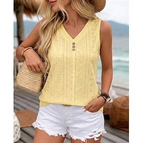 Dames T-shirts Oogje top Elegant Vintage Stijlvol Mouwloos V-hals Normale tops Dagelijks Uitgaan Vakantiekleding Zwart Wit Geel Stoffige roos Hemelsblauw Zomer Lente
