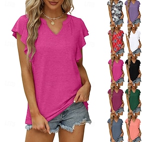 Dames T-shirt Zomer tops T-shirts Grafisch Planten Stijlvol Klassiek Korte mouw V-hals Lange tops Dagelijks Feestavondkleding Sport blauw Grijs-blauw paarsrood Zwart Wit Zomer Lente