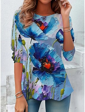 Dames Overhemd T-shirt Afdrukken Bloemen Elegant Modieus Modern Korte mouw Strakke ronde hals Normale tops Dagelijks Weekend blauw Rood Paars Oranje Groen Zomer