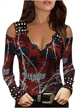 Dames Blouse Bloem Stijlvol Casual Lange Mouw V-hals Reguliere Tops Dagelijks Print Zwart Rood Khaki Donkergrijs Zomer Lente Herfst