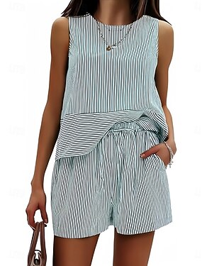 Dames Shorts Sets Bolero Top Mouwloos Ronde hals Gestreept Trekkoord Modieus Streetwear Casual Dagelijks Buiten blauw Zwart Blozend Roze Zomer Normale pasvorm