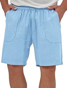 Voor heren Korte broek Linnen korte broek Zomer korte broeken Strandshorts Trekkoord Elastische taille Effen Comfort Ademend Knielengte Dagelijks Buiten Feestdagen Vakantie Modieus blauw Zwart