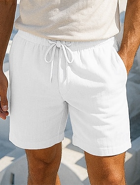 Voor heren Korte broek Linnen korte broek Zomer korte broeken Strandshorts Trekkoord Elastische taille Effen Ademend Zacht Korte Casual Dagelijks Feestdagen Streetwear Hawaii Wit blauw Micro-elastisch
