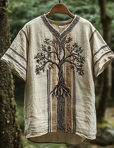 Voor heren T-shirt T-shirts Shirt met korte mouwen Korte mouw V-hals Zomer Viking Boom van leven Yggdrasil Vintage Ontwerper Etnische stijl Afdrukken Vakantie Straat Uitgaan Abrikoos Khaki Top
