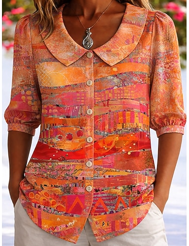 Dames Overhemd kunst Elegant Bohemen Vakantie Strand bruiloft Dagelijks Feestdagen Rood Hemelsblauw Oranje Zomer Lente
