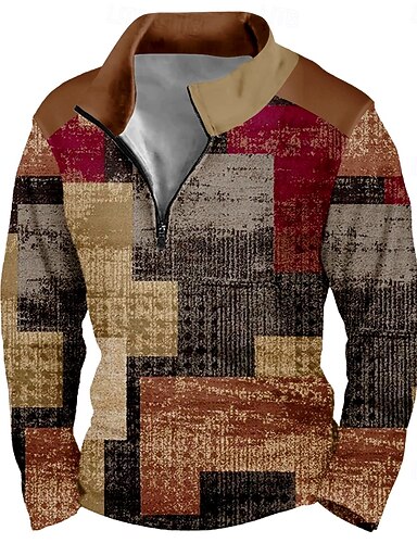 Voor heren Geometrisch Ruitjes Abstract Sweatshirt Sport Modieus Casual Lange mouw Rits Huis Feest Werk Streetwear Bruin Herfst Alle seizoenen Ontwerper S M L XL XXL XXXL