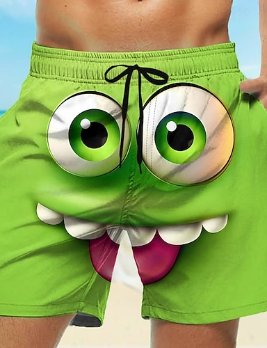 Voor heren 3D-cartoon Lach gezicht Grote ogen Lange zwembroeken Zwemshorts Boardshorts Medium Taille Grappig Buiten Vakantie Dagelijks gebruik Zijzakken Mesh voering Elastische tailleband met