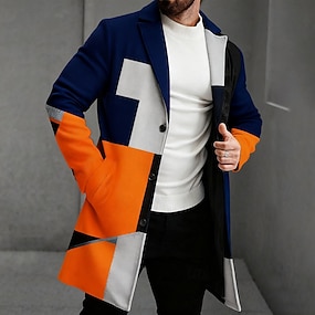 Voor heren Geometrisch Kleurenblok Lichtgewicht jack Overjas Houd Warm Casual liiketoiminta Dagelijks 3D-afdrukken Knop Voorvak Lente Herfst Winter Inkeping Lange mouw Rood Oranje Groen