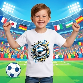 100% katoen Kinderen Jongens Wit Grafisch Voetbal Voetbal T-shirts T-shirt Blouse Strakke ronde hals Korte mouw Buiten Dagelijks gebruik Modieus Streetwear Ontwerper Opdrukken Zomer