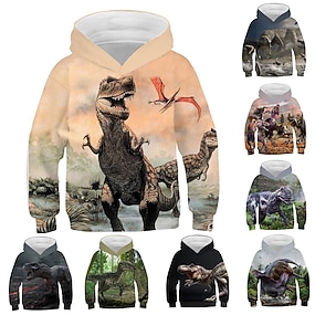 Jongens 3D Dinosaurus Trui met capuchon Pullover Lange mouw 3D-afdrukken Herfst Winter Modieus Streetwear Stoer Kinderen 3-12 jaar 4-12 jaar Buiten Casual Dagelijks Normale pasvorm