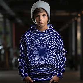 Jongens 3D Grafisch Geometrisch Trui met capuchon Lange mouw Lente Herfst Modieus Streetwear Kinderen 4-12 jaar Capuchon Buiten Casual Dagelijks Normale pasvorm