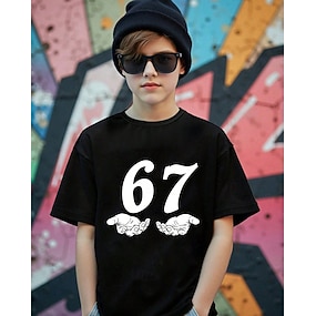 Katoen Kinderen Jongens Zwart Grafisch Grappige Slang 67 T-shirt Blouse Strakke ronde hals Korte mouw Buiten Dagelijks gebruik Modieus Streetwear Ontwerper Opdrukken Zomer