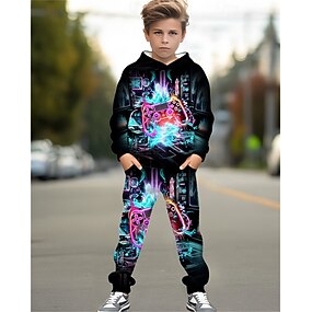 Jongens 3D Grafisch Spel Set met capuchon en joggingbroek Sportoutfit Trainingspakken Lange mouw Lente Herfst Dagelijks Basic Casual Kinderen 4-12 jaar Capuchon Buiten Vakantie Sport Getailleerd