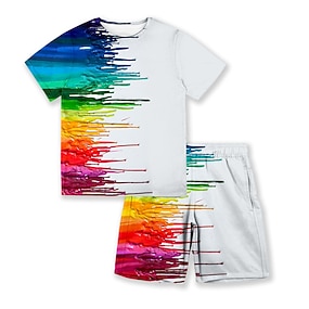 Jongens 3D Verloophelling T-shirt & shorts Kledingset Korte mouw Zomer Lente Sport Modieus Stoer Kinderen 3-13 jaar Buiten Vakantie Straat Normale pasvorm