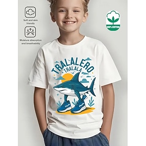 Grappige Italiaanse grafische katoenen T-shirt met korte mouwen voor jongens met cartoonprints van 'schattige kleine hersenrothaaienschoenen'