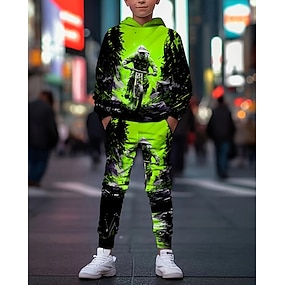 Jongens 3D Grafisch Set met capuchon en joggingbroek Hoodie-set Kledingset Lange mouw Lente Herfst Sport Modieus Stoer Kinderen 3-12 jaar Buiten Vakantie Straat Normale pasvorm