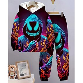 Jongens 3D Grafisch Geest Set met capuchon en joggingbroek Sportoutfit Trainingspakken Lange mouw Lente Herfst Dagelijks Basic Casual Kinderen 4-12 jaar Capuchon Buiten Vakantie Sport Getailleerd